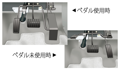 右足を曲げることが困難な方や義足の方におススメです。左足でもアクセルが踏めるよう、ペダルを設置している車両です。左右アクセルの切り替えが非常に簡単です。