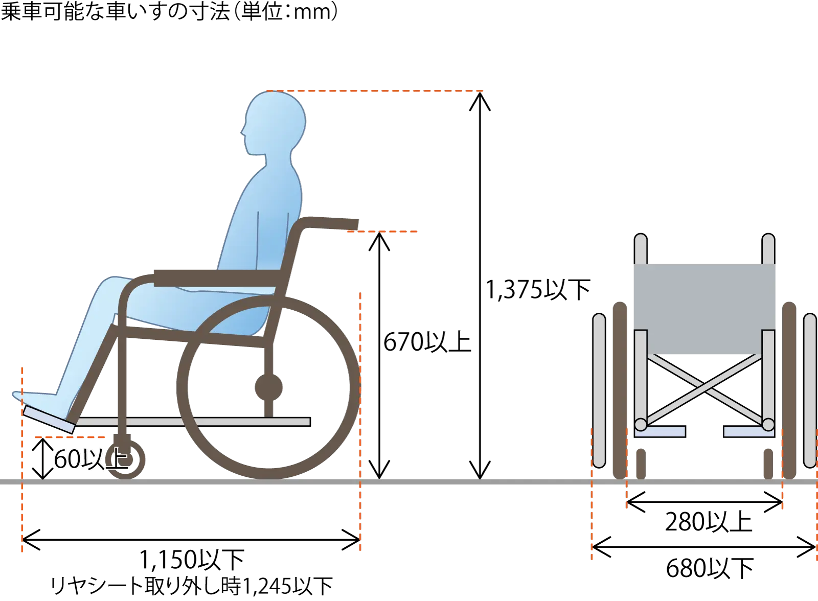 広々とした車いす乗車スペースでゆったり快適。頭上も足元も広々とした車いす乗車スペース。移動中もゆったり快適です。